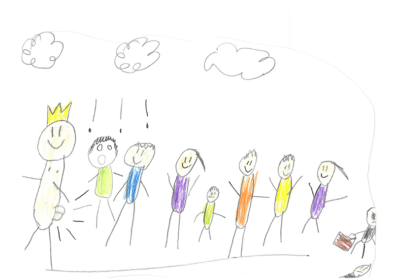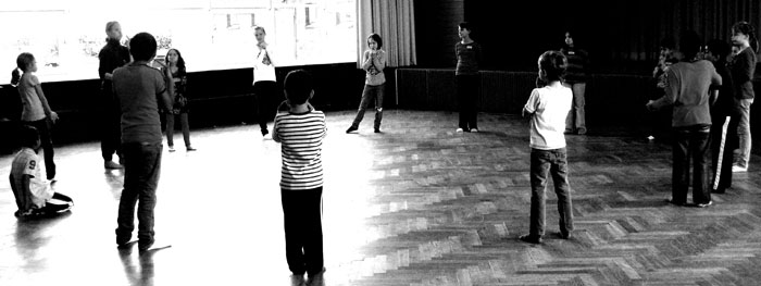 Scheinbar sind manchmal kleine Dinge für kleine Menschen so wichtig, dass sie Großes erreichen. So haben wir in kleinen Schritten Choreographien erfunden, die cool und elegant aussehen, haben gelernt, wie man sich groß machen kann, wenn man seine Haltung verändert und haben gemeinsam Musik und Klänge erzeugt, die sich wie ein Wildschwein, wie ein Königshof oder wie eine Nebelkrähe anhören. Jeder konnte ein Etwas und so ist neben der szenischen Präsentation im ersten Jahr ein Hörspiel entstanden, in dem die Kinder mit ihren Mitteln das Märchen erzählen und zum Klingen bringen.