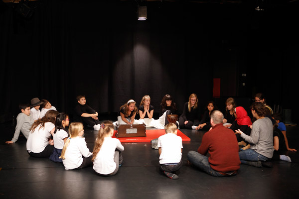 Jährlich besuchen über 100 Kinder aus den Berliner Kinderheimen eine Vorstellung der Kinderoper, die in der Adventszeit in der Werkstatt gezeigt wird, dieses Jahr Hans im Glück. Ein Teil der Kinder möchte aber mehr über das Theater, die Musik und die Geheimnisse hinter den Kulissen erfahren. Einmal in der Woche treffen Sie sich mit erfahrenen Musiktheaterpädagog_innen, die mit ihnen theatrale, tänzerische und musikalische Mittel erproben.