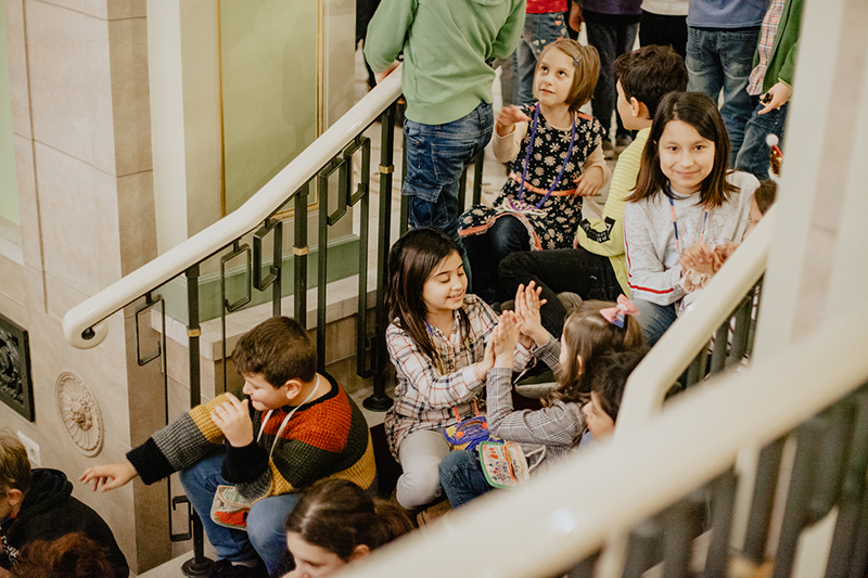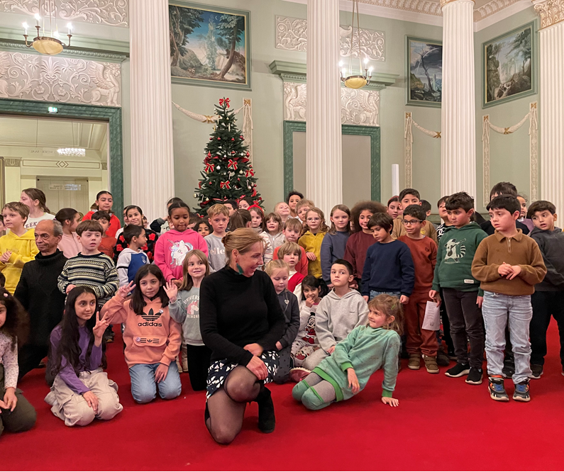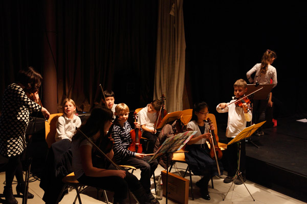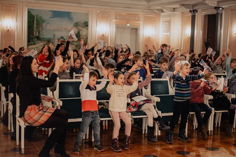Die Kinder erlebten begeistert ein Klassikkonzert und nahmen an der Performance durch die Künstler teil, die die Kinder durch ein Märchen begleiteten.