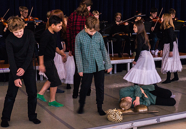 Zur erfolgreichen Umsetzung gehört zum einen Selbstbewusstsein: Ich stehe auf der Bühne, präsentiere mich öffentlich vor anderen und spüre die positive Resonanz auf das Ergebnis der langen Proben. Zum anderen hat das Sozialverhalten eine große Bedeutung: Wenn jemand anders gerade im Zentrum der Handlung steht, dann nehme ich mich zurück, mit dem Wissen, dass die anderen das ebenso machen. Und letztendlich der Umgang mit Krisen: Es gab eine schwierige Situation, in der alle Beteiligten und vor allem die Kinder ganz klar zu verstehen gegeben haben, dass sie gemeinsam das Problem lösen möchten, um sich dann weiter intensiv auf die Probe konzentrieren zu können.
